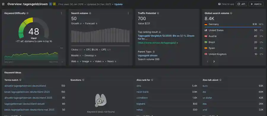 Asset Valuation Class: Calculate your CPC for ‘Stock Markets’ or “Tagesgeldzinsen” or “Interest rates” over 5 years. The domain assets cost less than 2 years of your ad spend.